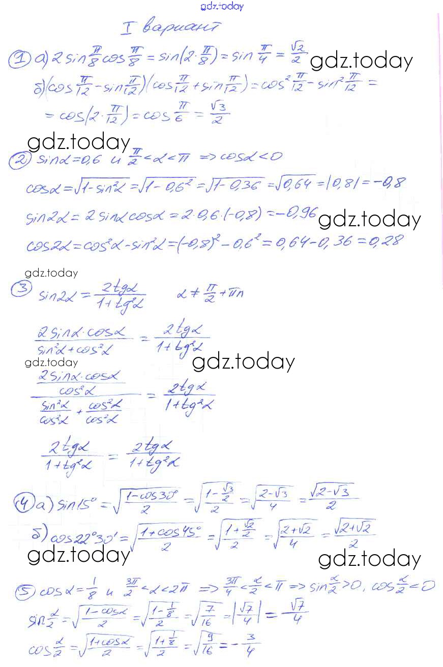 На страницах сайта gdz.today вы найдете учебный и вспомогательный материал, направленный на улучшения знаний школьной программы. ГДЗ - онлайн мир знаний СР №29. Формулы для двойных и половинных углов Решение к самостоятельным работам вариант 1 Дидактическим материалам по Алгебре для 9 класса Потапов, Шевкин Просвещение МГУ - школе 2010