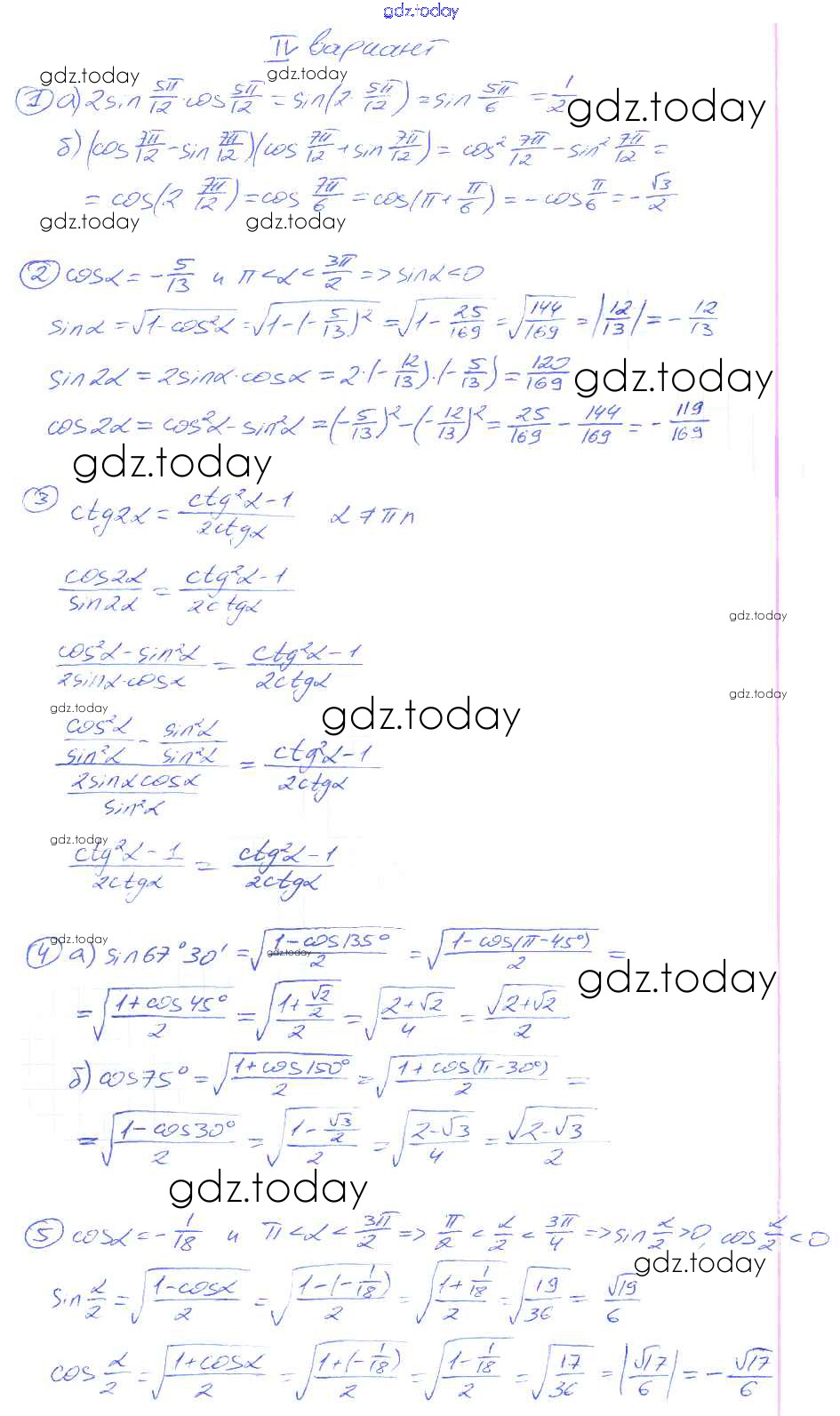 На страницах сайта gdz.today вы найдете учебный и вспомогательный материал, направленный на улучшения знаний школьной программы. ГДЗ - онлайн мир знаний СР №29. Формулы для двойных и половинных углов Решение к самостоятельным работам вариант 4 Дидактическим материалам по Алгебре для 9 класса Потапов, Шевкин Просвещение МГУ - школе 2010