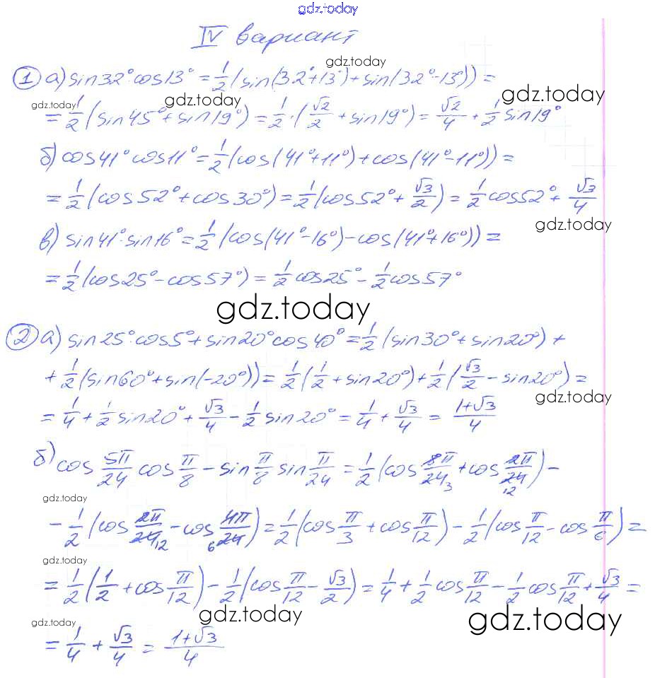 На страницах сайта gdz.today вы найдете учебный и вспомогательный материал, направленный на улучшения знаний школьной программы. ГДЗ - онлайн мир знаний СР №30. Произведения синусов и косинусов Решение к самостоятельным работам вариант 4 Дидактическим материалам по Алгебре для 9 класса Потапов, Шевкин Просвещение МГУ - школе 2010