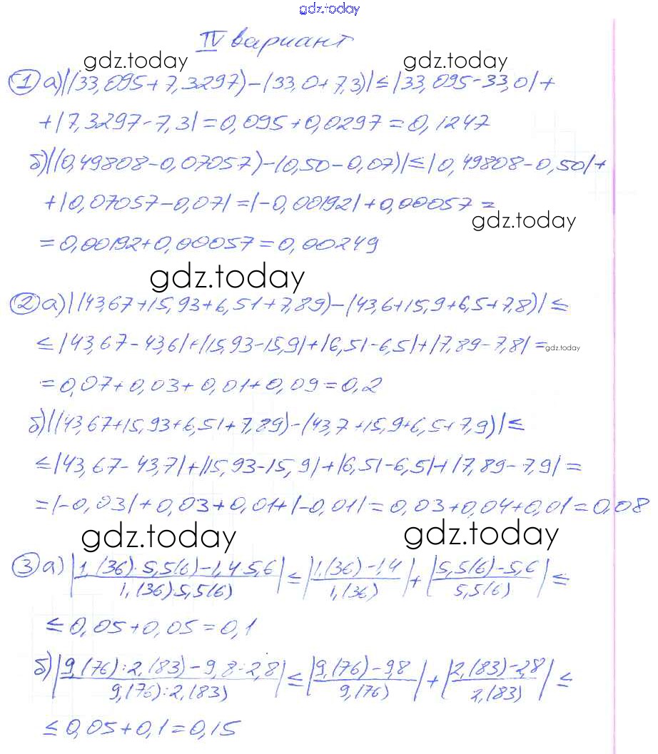 Ответы к СР №32. Приближения суммы, разности, произведения и частного чисел Решение к самостоятельным работам вариант 4 Дидактическим материалам по Алгебре для 9 класса Потапов, Шевкин Просвещение МГУ - школе 2010