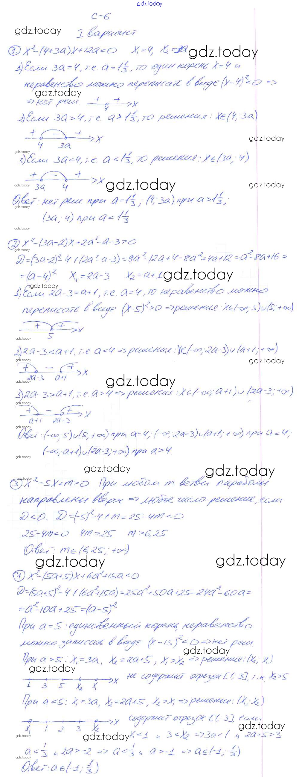 На страницах сайта gdz.today вы найдете учебный и вспомогательный материал, направленный на улучшения знаний школьной программы. ГДЗ - онлайн мир знаний СР №6. Неравенства второй степени с параметром Решение к самостоятельным работам вариант 1 Дидактическим материалам по Алгебре для 9 класса Потапов, Шевкин Просвещение МГУ - школе 2010