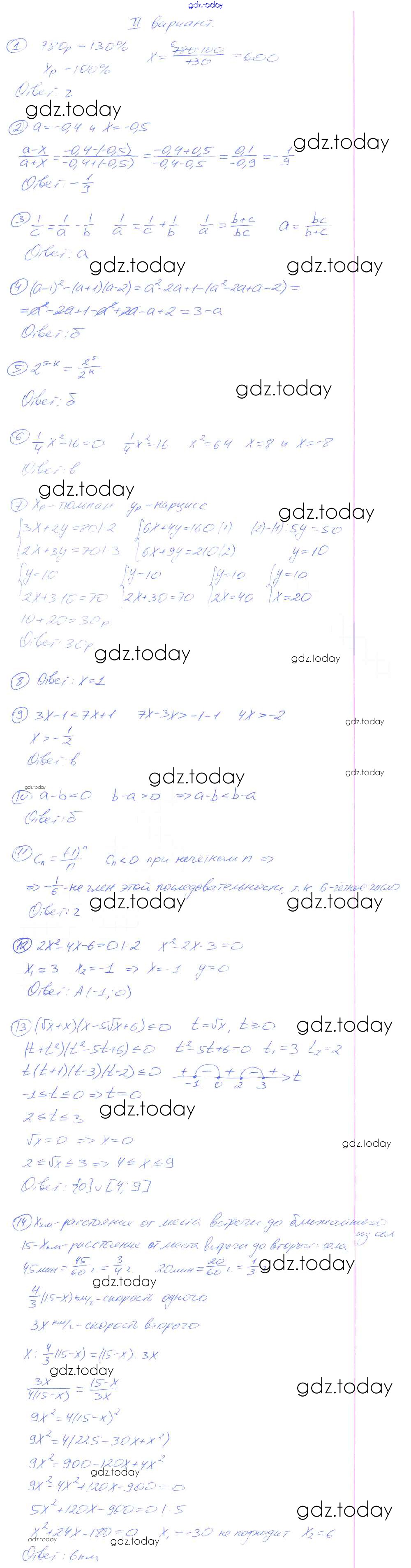 На страницах сайта gdz.today вы найдете учебный и вспомогательный материал, направленный на улучшения знаний школьной программы. ГДЗ - онлайн мир знаний Решение к тестам для самоконтроля Вариант 2 Дидактическим материалам по Алгебре для 9 класса Потапов, Шевкин Просвещение МГУ - школе 2010