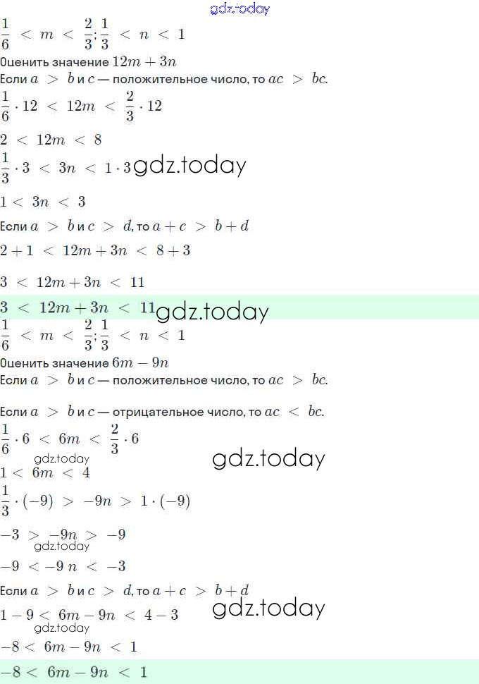 Решение. §3. Сложение и умножение числовых неравенств. Оценивание значения выражения