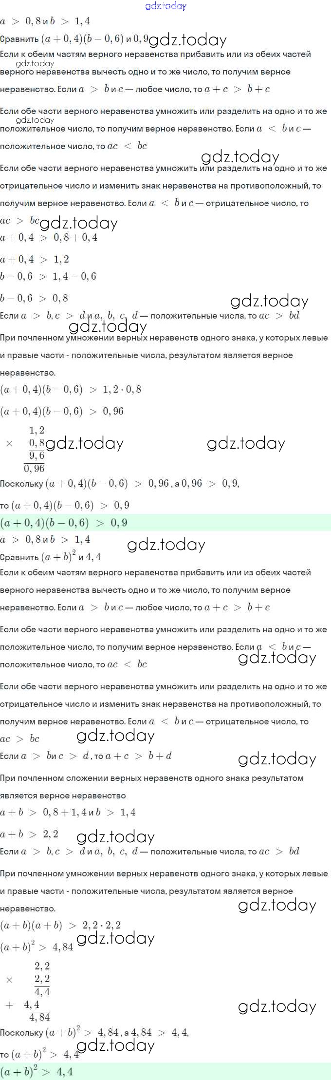 Решение. §3. Сложение и умножение числовых неравенств. Оценивание значения выражения
