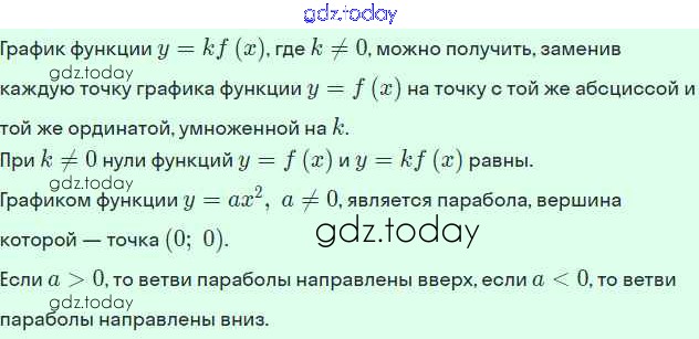 На страницах сайта gdz.today вы найдете учебный и вспомогательный материал, направленный на улучшения знаний школьной программы. ГДЗ - онлайн мир знаний Решение. §9. Построение графика функции y=kf(x) 1 Рабочей тетради по Алгебре для 9 класса Мерзляк, Полонский Вентана-граф 2019