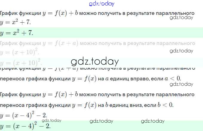 Ответы к Решение. §10. Построение графиков функций y=f(x)+b и y=f(x+a) 2 Рабочей тетради по Алгебре для 9 класса Мерзляк, Полонский Вентана-граф 2019
