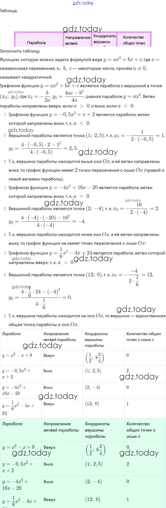 На страницах сайта gdz.today вы найдете учебный и вспомогательный материал, направленный на улучшения знаний школьной программы. ГДЗ - онлайн мир знаний Решение. §11. Квадратичная функция, её график и свойства 4 Рабочей тетради по Алгебре для 9 класса Мерзляк, Полонский Вентана-граф 2019