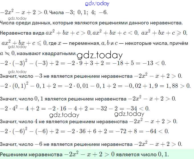 Ответы к Решение. §12. Решение квадратных неравенств 2 Рабочей тетради по Алгебре для 9 класса Мерзляк, Полонский Вентана-граф 2019