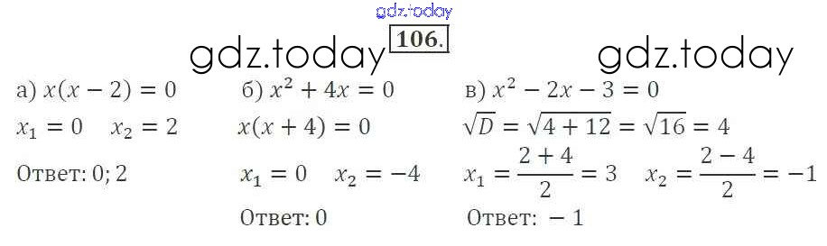 Ответы к Решение. Упражнения 106 Рабочей тетради по Алгебре для 9 класса Минаева, Рослова Просвещение 2017