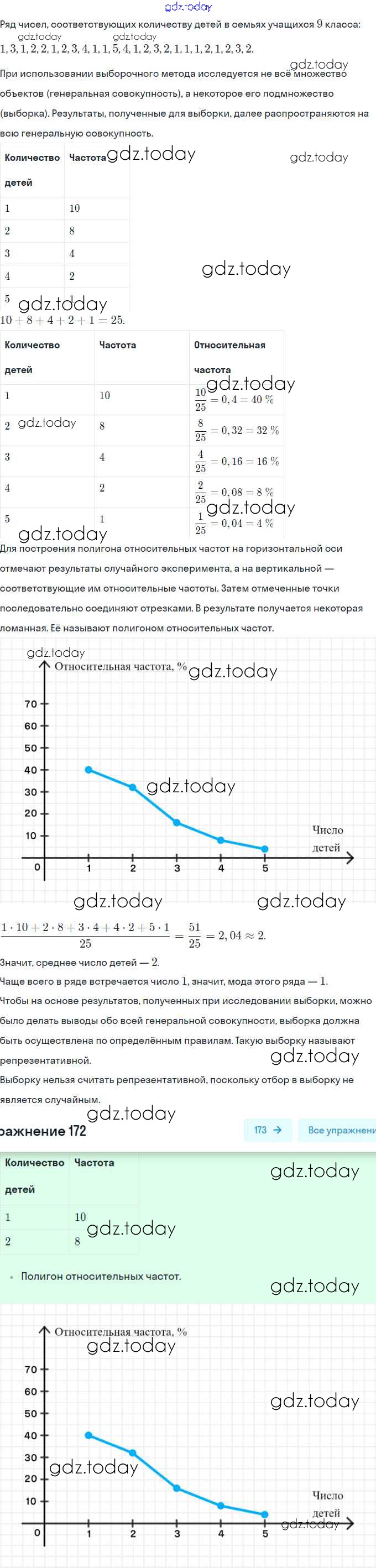 Ответы к Решение. Упражнения 172 Рабочей тетради по Алгебре для 9 класса Минаева, Рослова Просвещение 2017