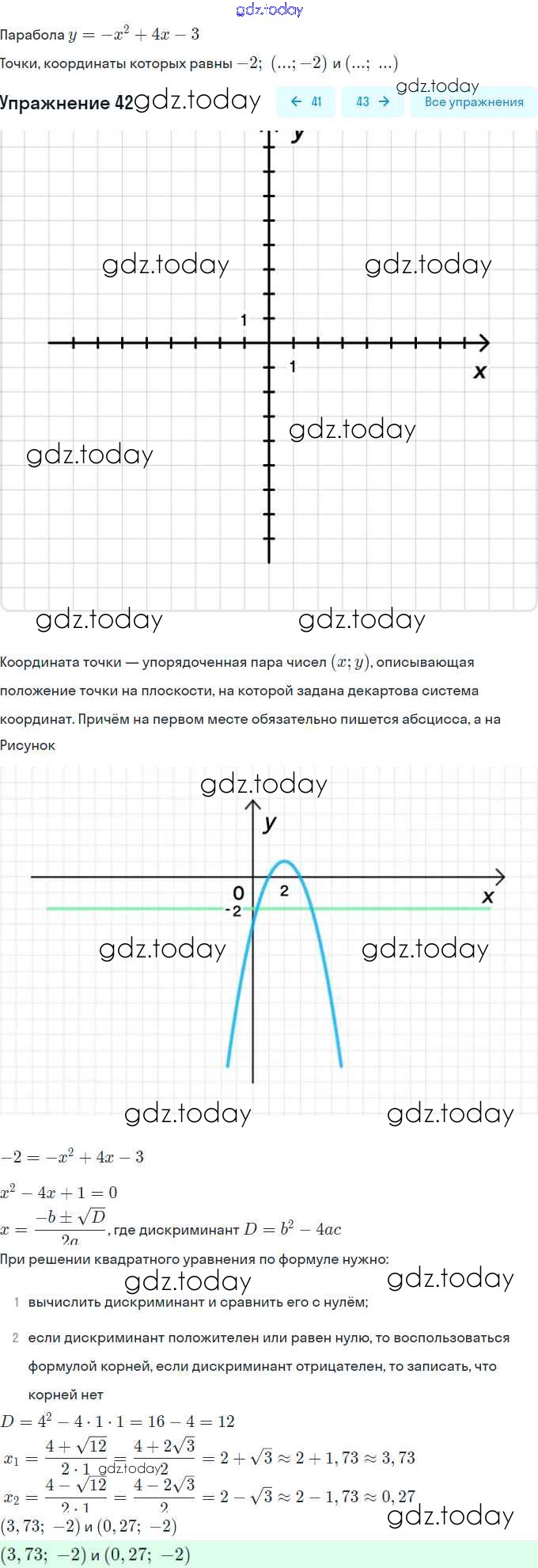 На страницах сайта gdz.today вы найдете учебный и вспомогательный материал, направленный на улучшения знаний школьной программы. ГДЗ - онлайн мир знаний Решение. Упражнения 42 Рабочей тетради по Алгебре для 9 класса Минаева, Рослова Просвещение 2017