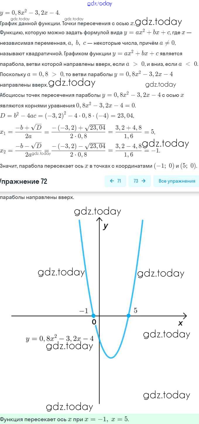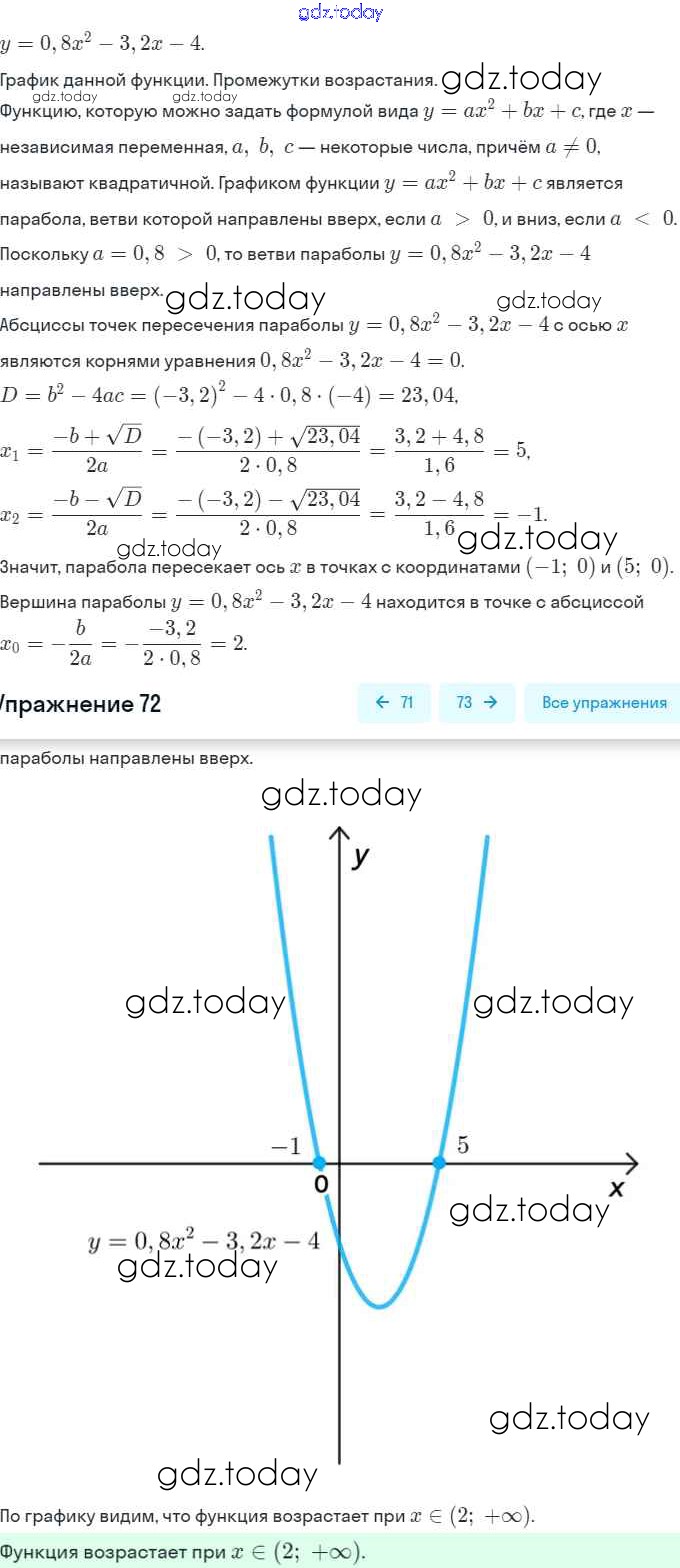 Ответы к Решение. Упражнения 72 Рабочей тетради по Алгебре для 9 класса Минаева, Рослова Просвещение 2017