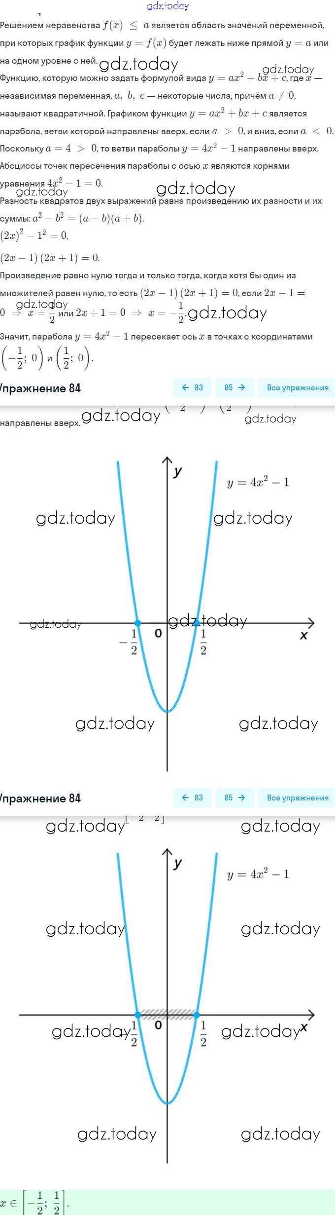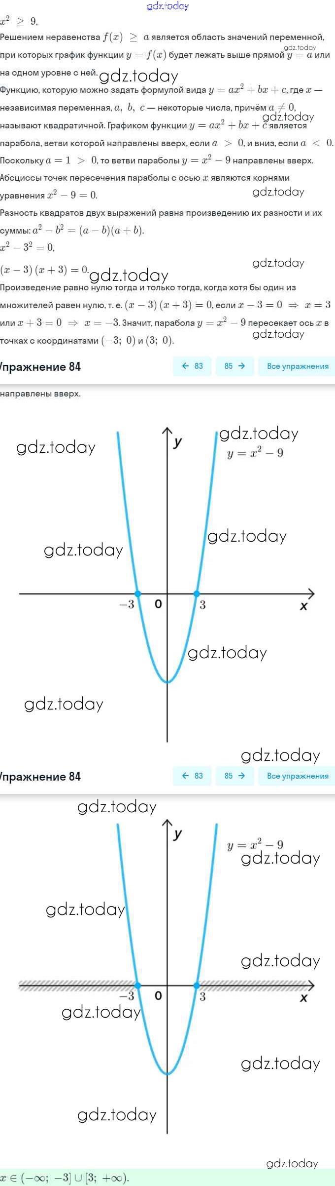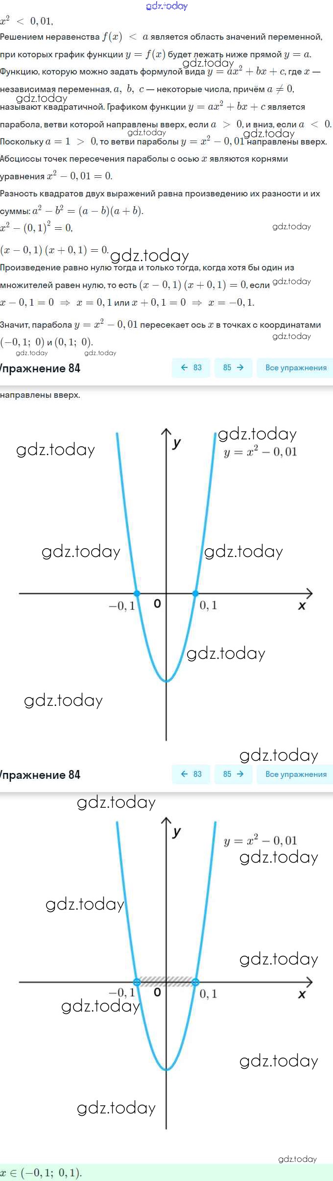 Ответы к Решение. Упражнения 84 Рабочей тетради по Алгебре для 9 класса Минаева, Рослова Просвещение 2017