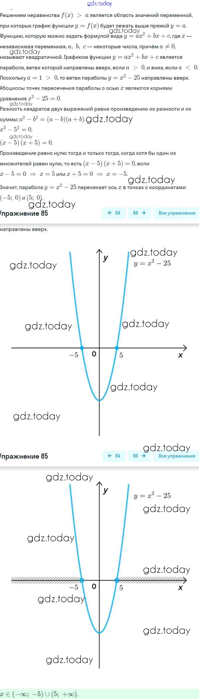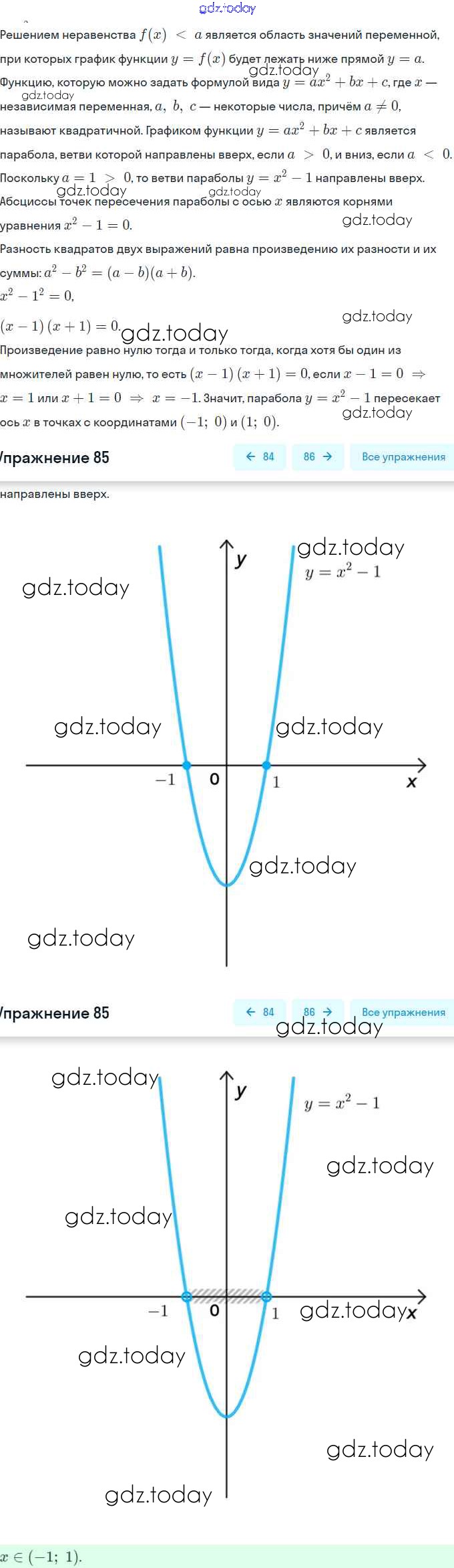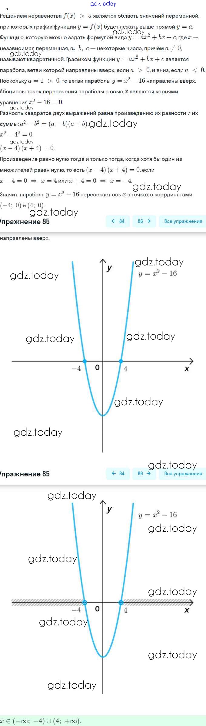 Ответы к Решение. Упражнения 85 Рабочей тетради по Алгебре для 9 класса Минаева, Рослова Просвещение 2017