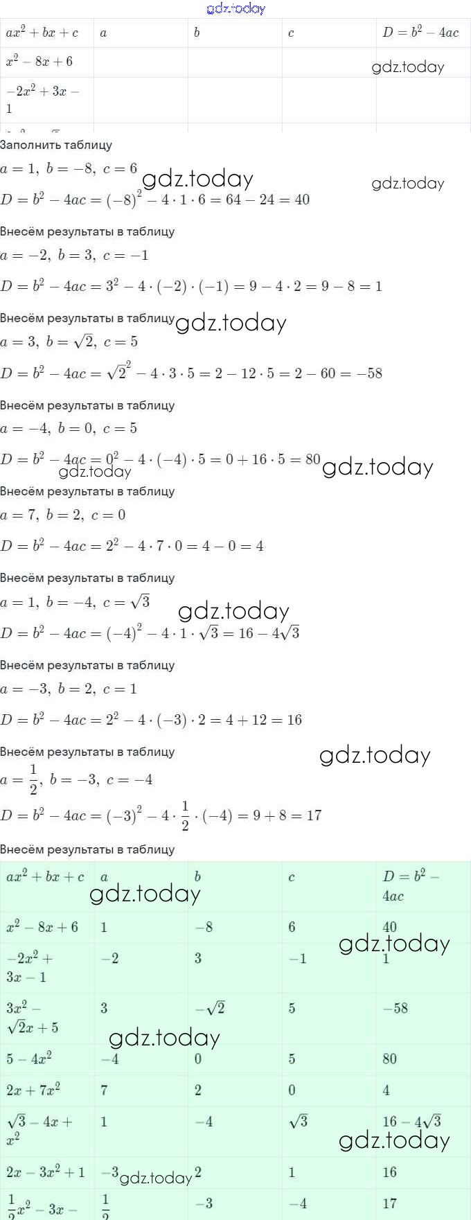 Ответы к Решение. §3. Квадратный трёхчлен и его корни 1 Рабочей тетради по Алгебре для 9 класса Миндюк, Шлыкова Просвещение 2018