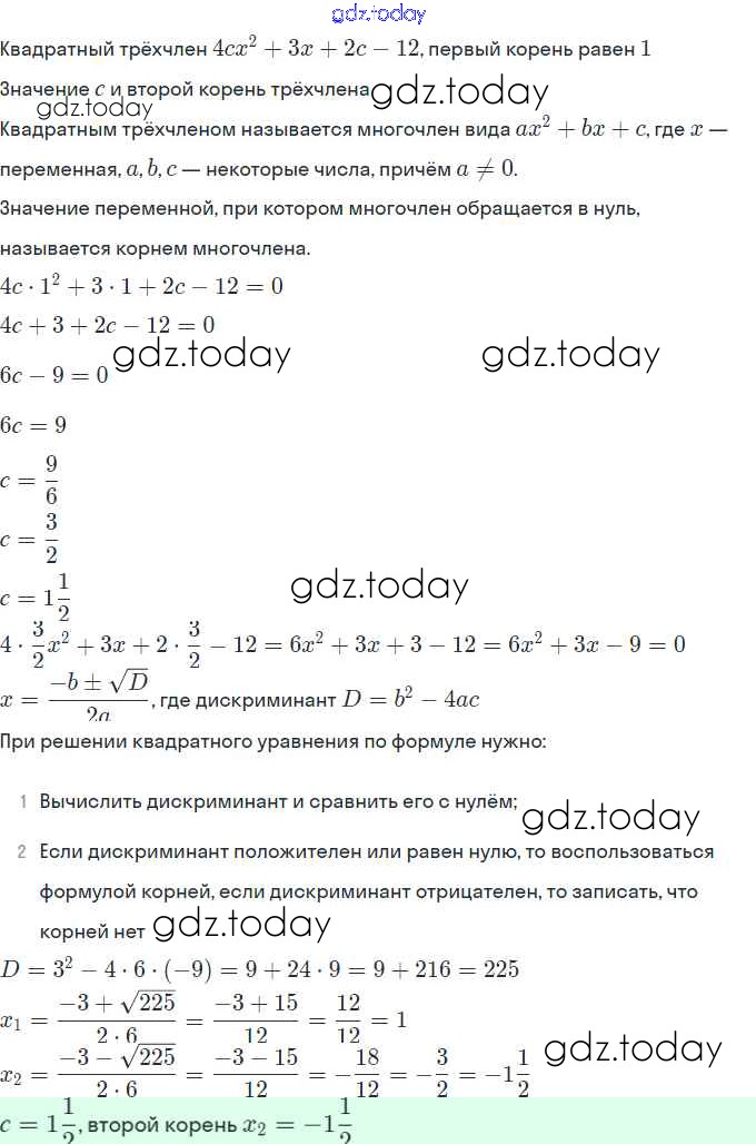 Ответы к Решение. §3. Квадратный трёхчлен и его корни 11 Рабочей тетради по Алгебре для 9 класса Миндюк, Шлыкова Просвещение 2018