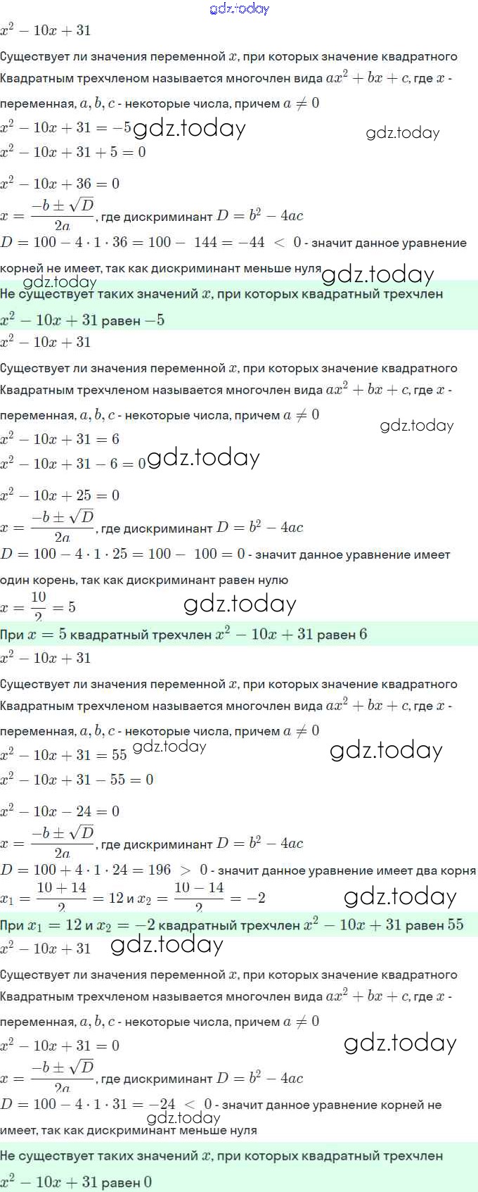 Ответы к Решение. §3. Квадратный трёхчлен и его корни 4 Рабочей тетради по Алгебре для 9 класса Миндюк, Шлыкова Просвещение 2018