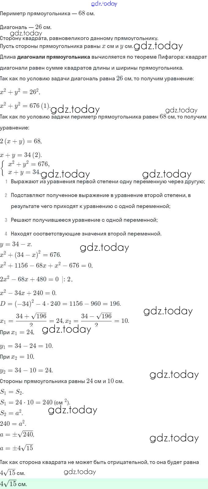 Решение. §17. Решение задач с помощью систем уравнений второй степени