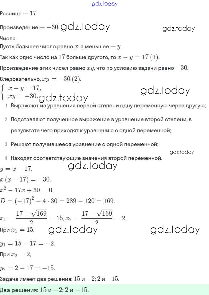 Решение. §17. Решение задач с помощью систем уравнений второй степени