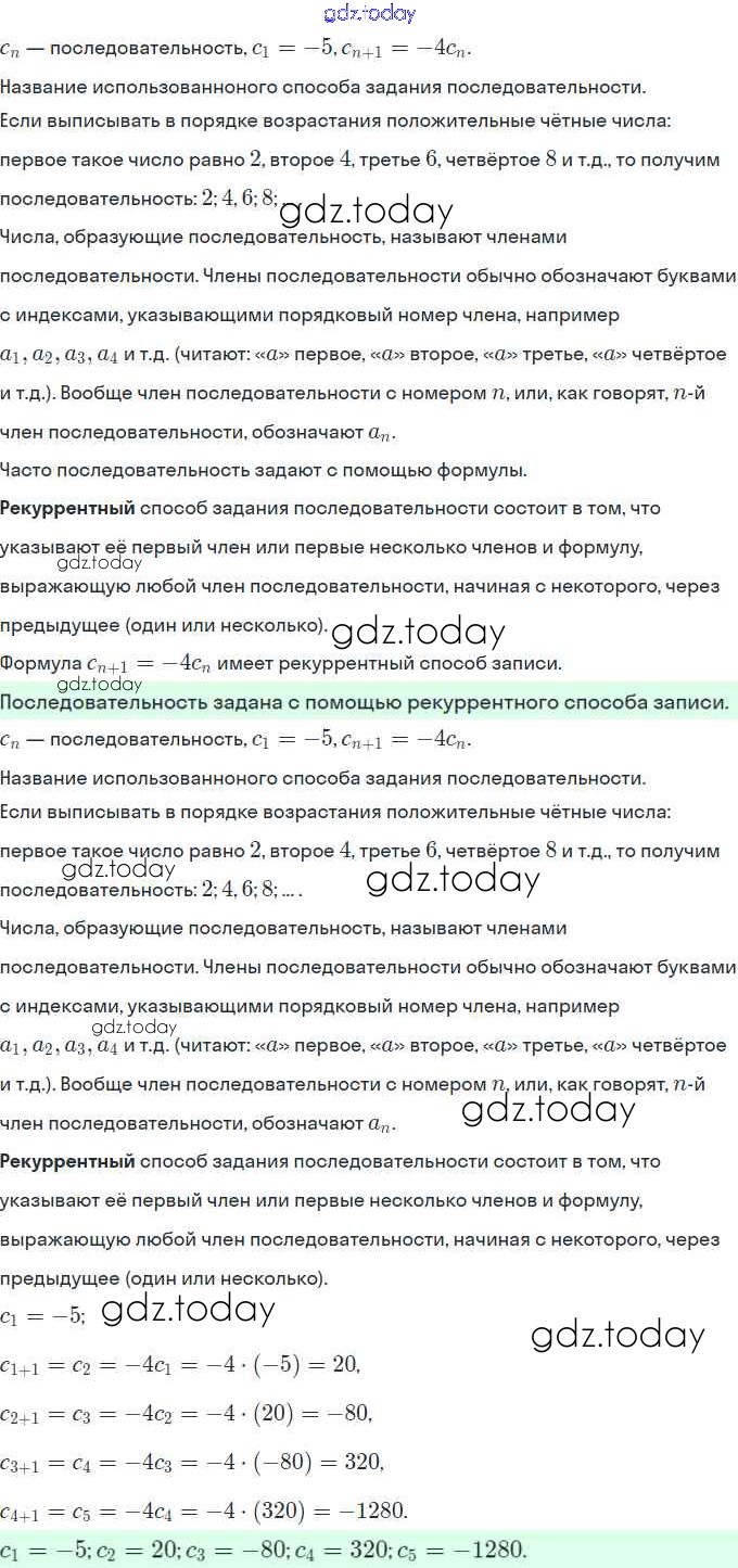 Ответы к Решение. §20. Последовательности 10 Рабочей тетради по Алгебре для 9 класса Миндюк, Шлыкова Просвещение 2018