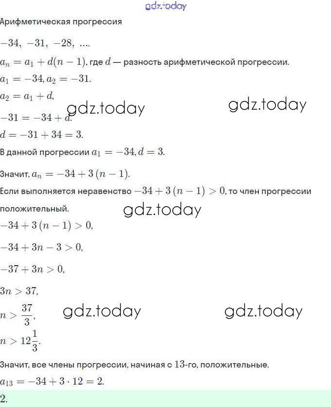 Решение. §21. Определение арифметической прогрессии. Формула n-го члена арифметической прогрессии