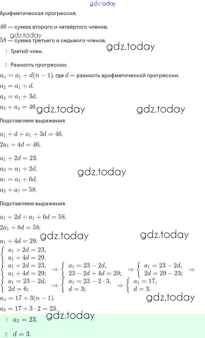 Решение. §21. Определение арифметической прогрессии. Формула n-го члена арифметической прогрессии