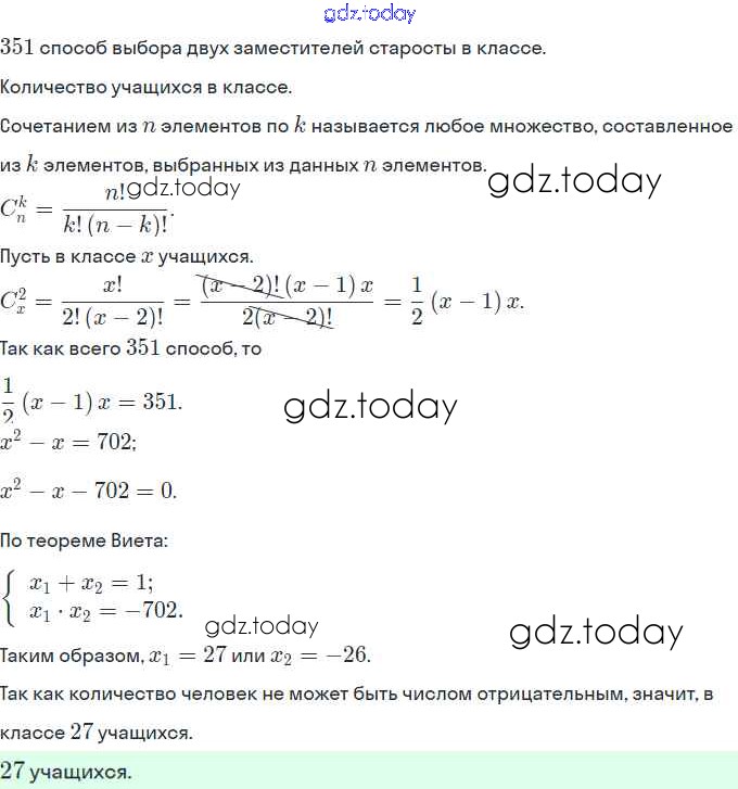 Ответы к Решение. §28. Сочетания 10 Рабочей тетради по Алгебре для 9 класса Миндюк, Шлыкова Просвещение 2018