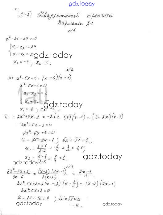На страницах сайта gdz.today вы найдете учебный и вспомогательный материал, направленный на улучшения знаний школьной программы. ГДЗ - онлайн мир знаний СР-2. Варианты Самостоятельные работы А1 Самостоятельным и контрольным работам по Алгебре для 9 класса Ершова, Голобородько Илекса 2015