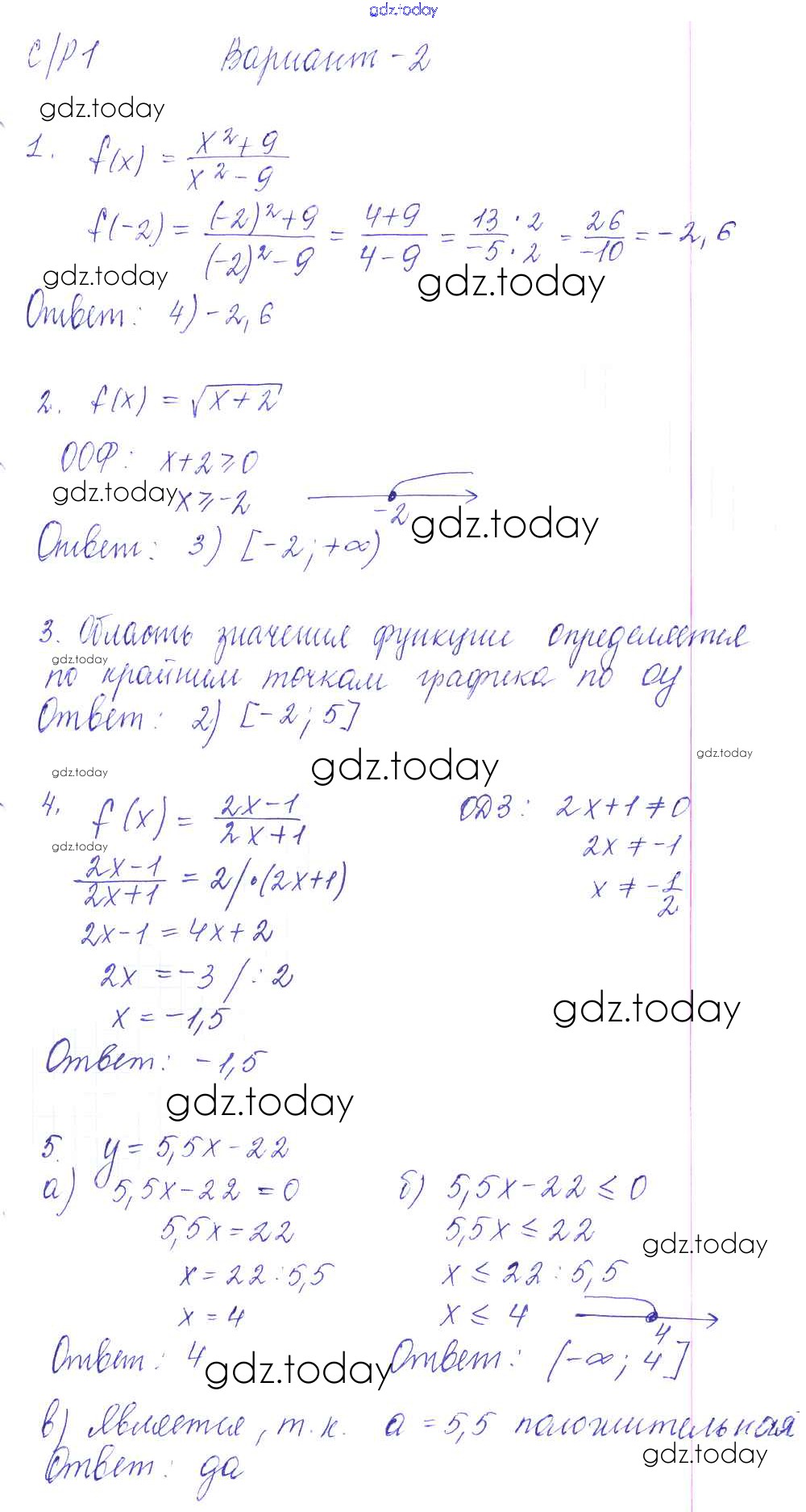 На страницах сайта gdz.today вы найдете учебный и вспомогательный материал, направленный на улучшения знаний школьной программы. ГДЗ - онлайн мир знаний СР-1. Функции и их свойства Решение к самостоятельным работам вариант 2 Самостоятельным и контрольным работам по Алгебре для 9 класса Глазков, Варшавский Экзамен УМК 2013