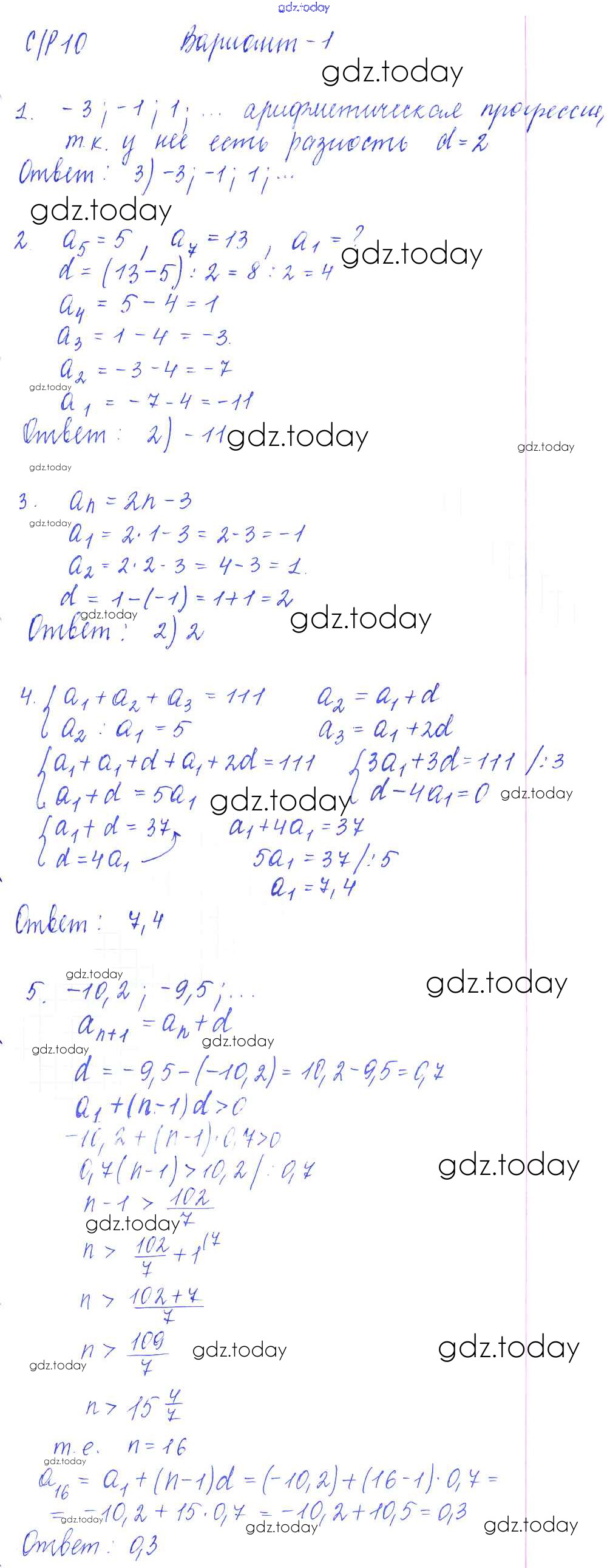 На страницах сайта gdz.today вы найдете учебный и вспомогательный материал, направленный на улучшения знаний школьной программы. ГДЗ - онлайн мир знаний СР-10. Арифметическая прогрессия Решение к самостоятельным работам вариант 1 Самостоятельным и контрольным работам по Алгебре для 9 класса Глазков, Варшавский Экзамен УМК 2013