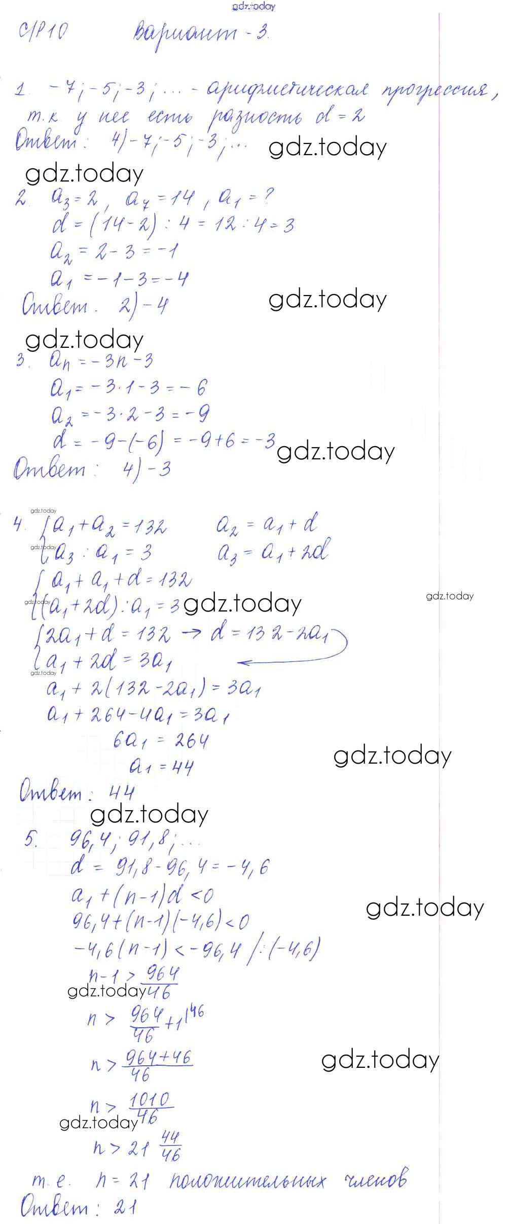 На страницах сайта gdz.today вы найдете учебный и вспомогательный материал, направленный на улучшения знаний школьной программы. ГДЗ - онлайн мир знаний СР-10. Арифметическая прогрессия Решение к самостоятельным работам вариант 3 Самостоятельным и контрольным работам по Алгебре для 9 класса Глазков, Варшавский Экзамен УМК 2013