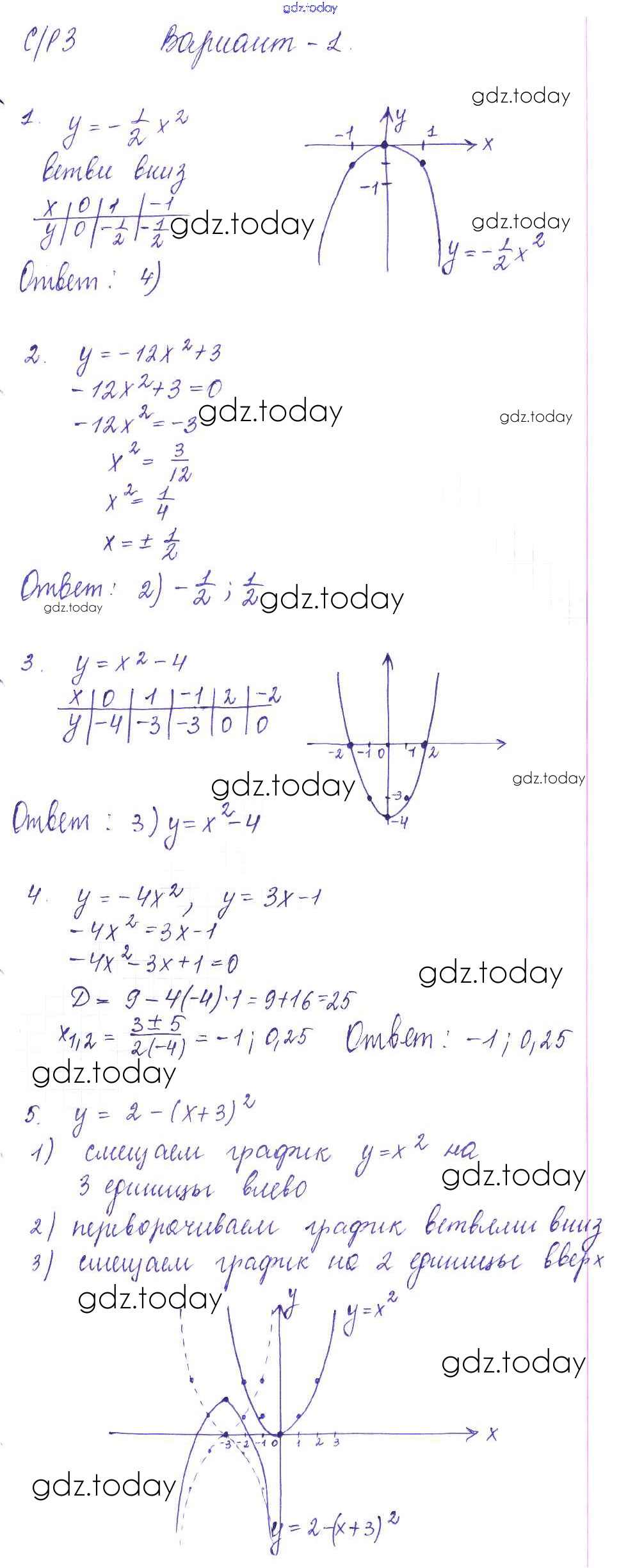 На страницах сайта gdz.today вы найдете учебный и вспомогательный материал, направленный на улучшения знаний школьной программы. ГДЗ - онлайн мир знаний СР-3. Квадратичная функция и её график Решение к самостоятельным работам вариант 1 Самостоятельным и контрольным работам по Алгебре для 9 класса Глазков, Варшавский Экзамен УМК 2013