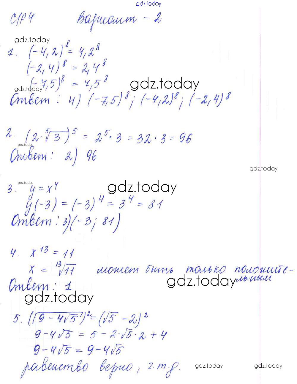 На страницах сайта gdz.today вы найдете учебный и вспомогательный материал, направленный на улучшения знаний школьной программы. ГДЗ - онлайн мир знаний СР-4. Степенная функция. Корень n-й степени Решение к самостоятельным работам вариант 2 Самостоятельным и контрольным работам по Алгебре для 9 класса Глазков, Варшавский Экзамен УМК 2013