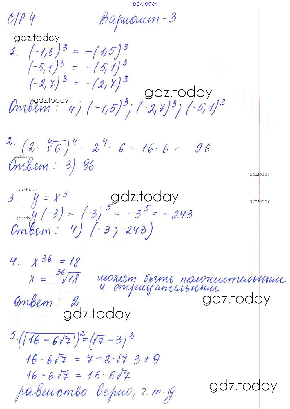 На страницах сайта gdz.today вы найдете учебный и вспомогательный материал, направленный на улучшения знаний школьной программы. ГДЗ - онлайн мир знаний СР-4. Степенная функция. Корень n-й степени Решение к самостоятельным работам вариант 3 Самостоятельным и контрольным работам по Алгебре для 9 класса Глазков, Варшавский Экзамен УМК 2013