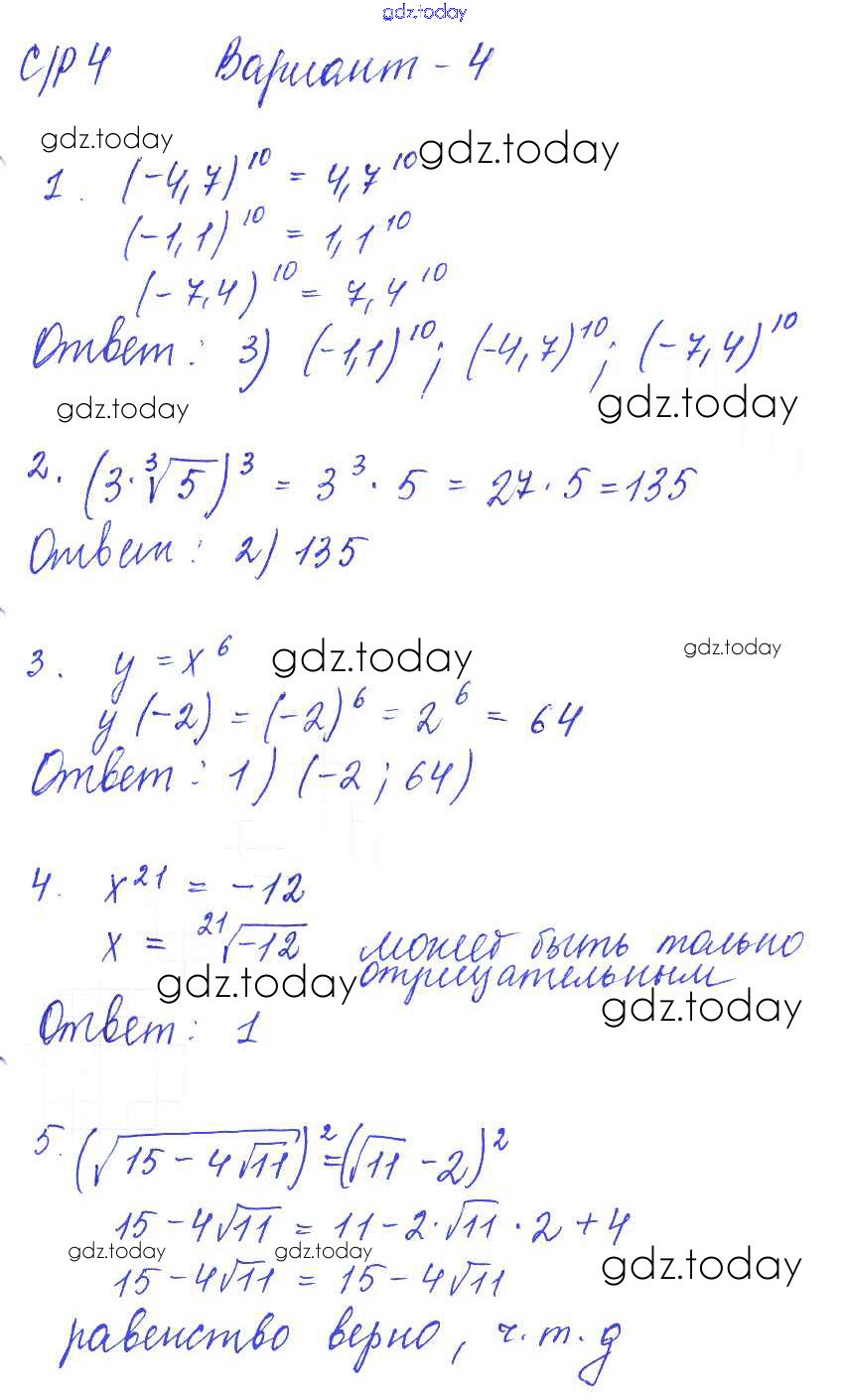 На страницах сайта gdz.today вы найдете учебный и вспомогательный материал, направленный на улучшения знаний школьной программы. ГДЗ - онлайн мир знаний СР-4. Степенная функция. Корень n-й степени Решение к самостоятельным работам вариант 4 Самостоятельным и контрольным работам по Алгебре для 9 класса Глазков, Варшавский Экзамен УМК 2013