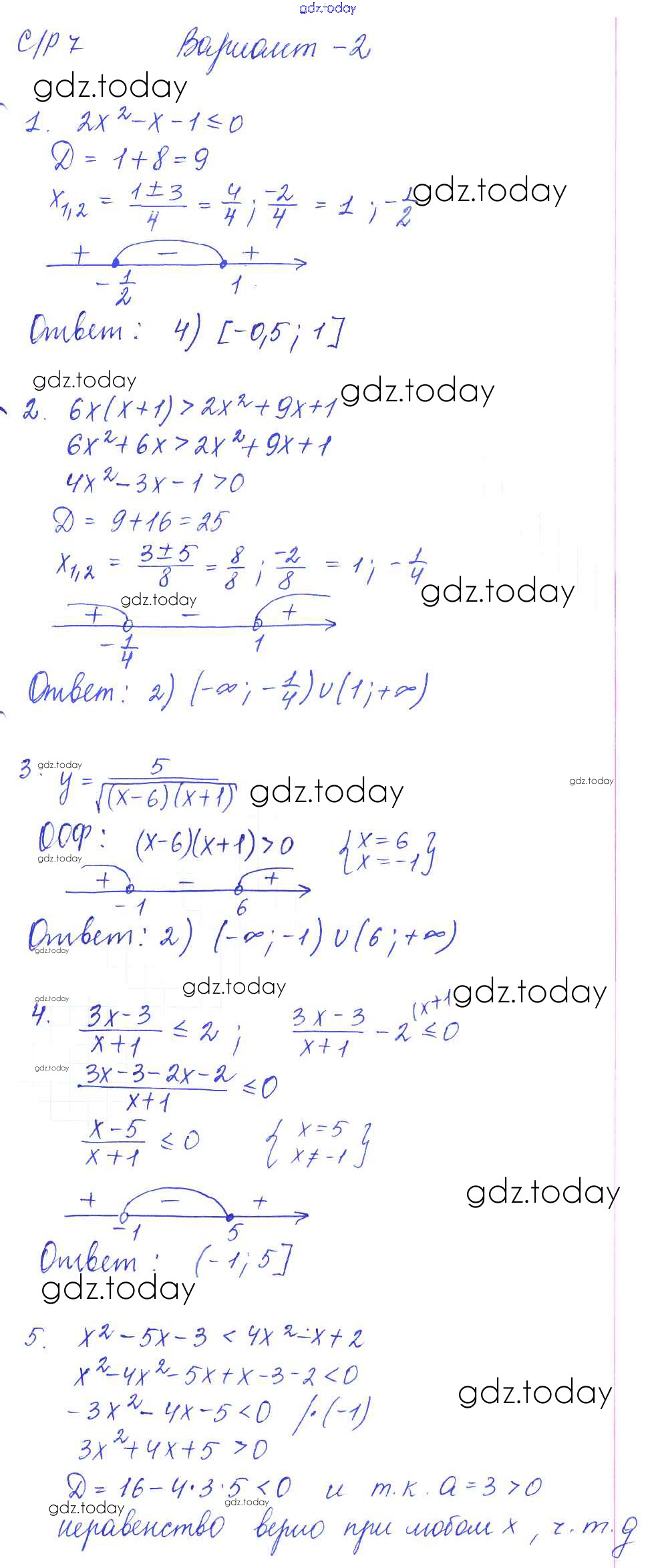 На страницах сайта gdz.today вы найдете учебный и вспомогательный материал, направленный на улучшения знаний школьной программы. ГДЗ - онлайн мир знаний СР-7. Неравенства с одной переменной Решение к самостоятельным работам вариант 2 Самостоятельным и контрольным работам по Алгебре для 9 класса Глазков, Варшавский Экзамен УМК 2013