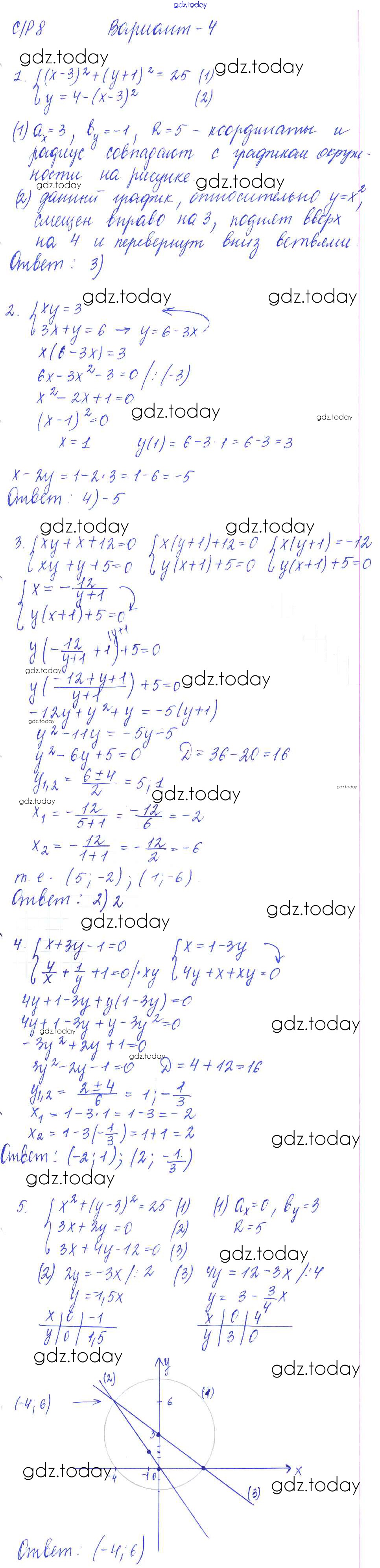 На страницах сайта gdz.today вы найдете учебный и вспомогательный материал, направленный на улучшения знаний школьной программы. ГДЗ - онлайн мир знаний СР-8. Уравнения с двумя переменными и их системы Решение к самостоятельным работам вариант 4 Самостоятельным и контрольным работам по Алгебре для 9 класса Глазков, Варшавский Экзамен УМК 2013