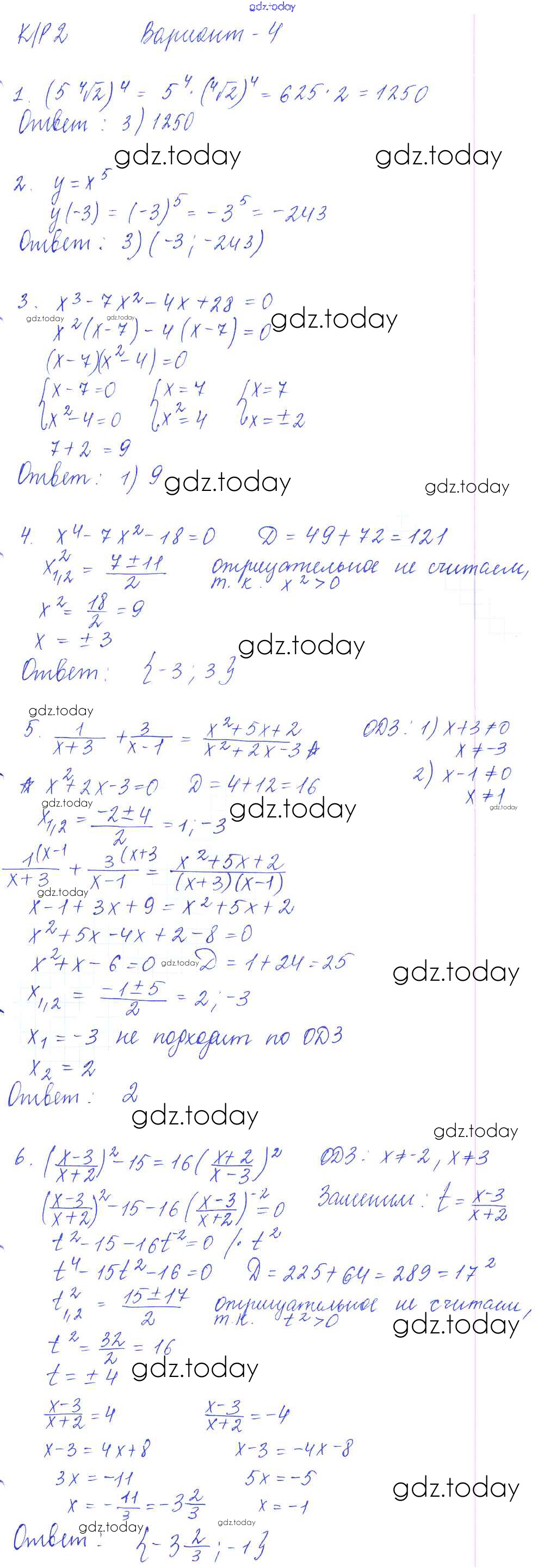 На страницах сайта gdz.today вы найдете учебный и вспомогательный материал, направленный на улучшения знаний школьной программы. ГДЗ - онлайн мир знаний КР-2. Степенная функция. Корень n-й степени. Уравнения с одной переменной Решение к контрольным работам вариант 4 Самостоятельным и контрольным работам по Алгебре для 9 класса Глазков, Варшавский Экзамен УМК 2013