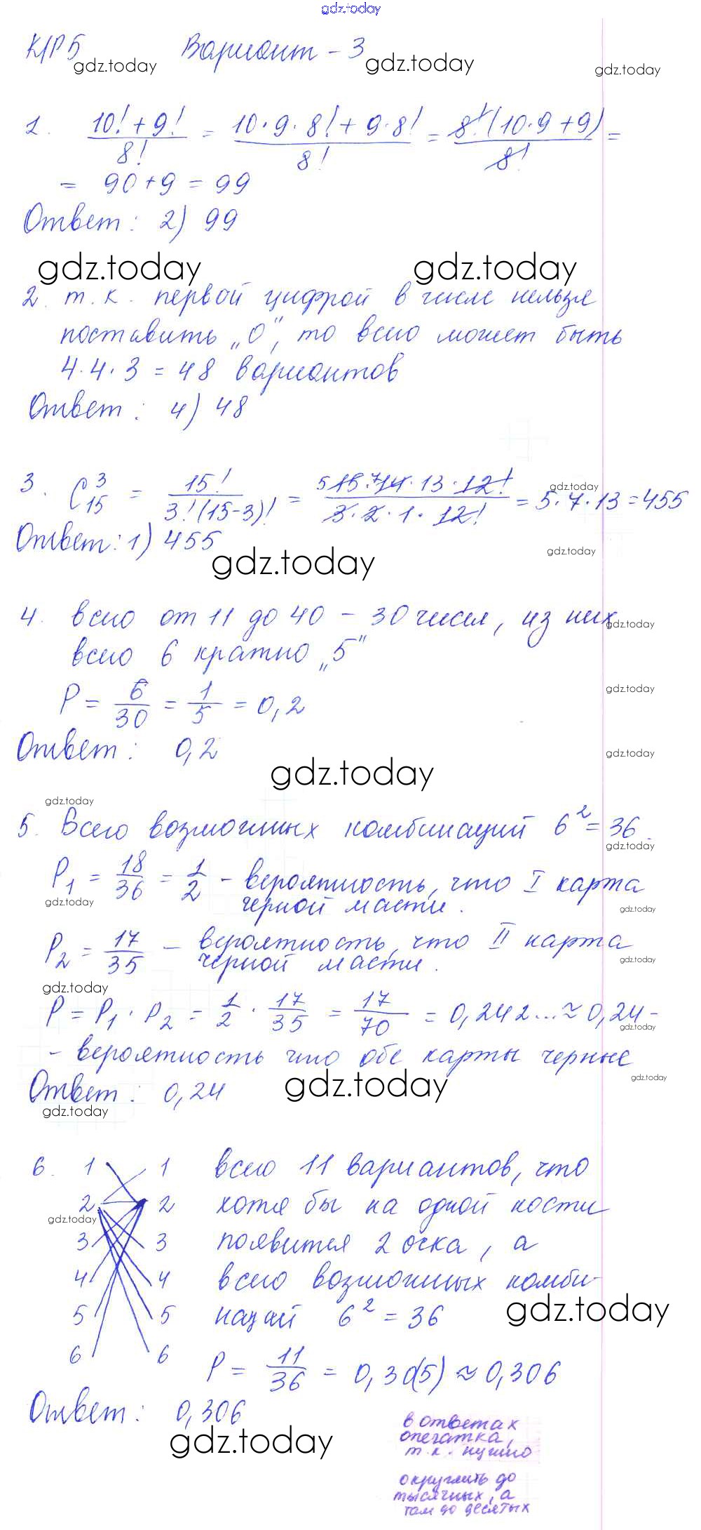 На страницах сайта gdz.today вы найдете учебный и вспомогательный материал, направленный на улучшения знаний школьной программы. ГДЗ - онлайн мир знаний КР-5. Элементы комбинаторики и теории вероятностей Решение к контрольным работам вариант 3 Самостоятельным и контрольным работам по Алгебре для 9 класса Глазков, Варшавский Экзамен УМК 2013
