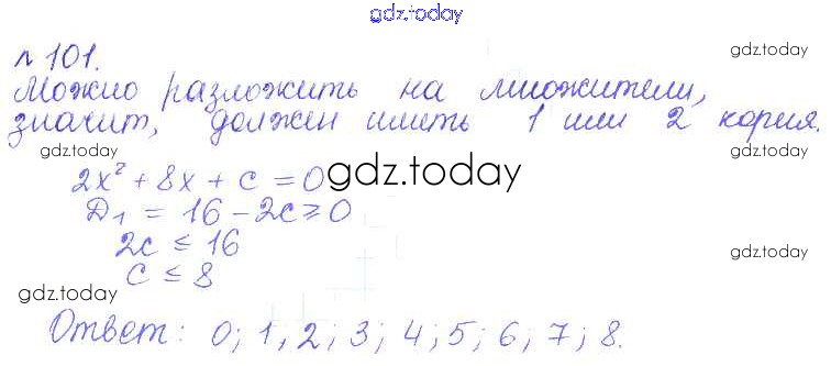Ответы к Решение. Упражнения 101 Учебнику по Алгебре для 9 класса Дорофеев, Суворова Просвещение, Просвещение 2016, 2019