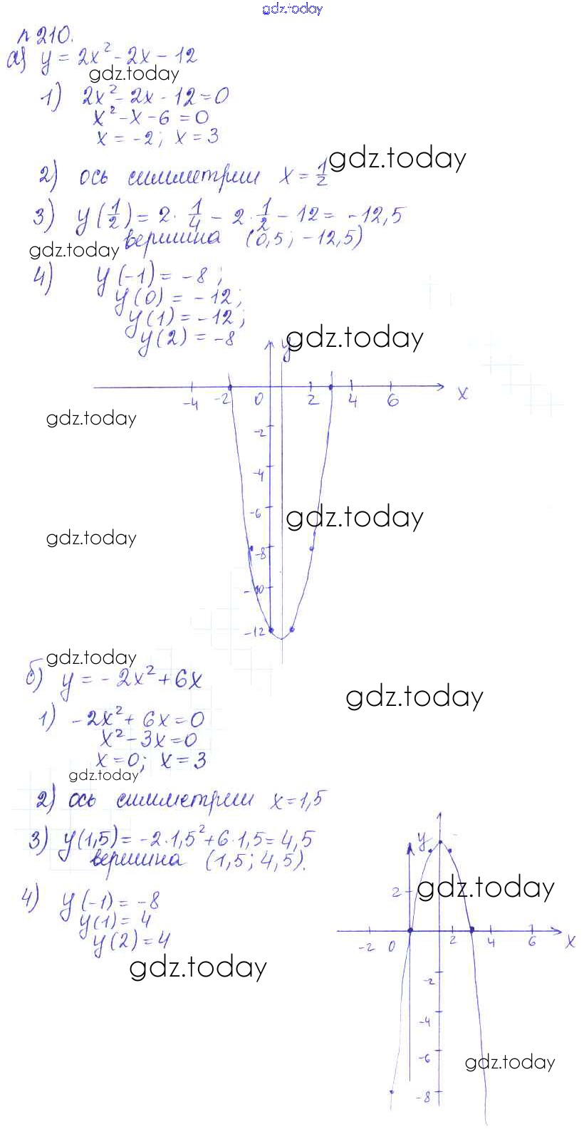 Ответы к Решение. Упражнения 210 Учебнику по Алгебре для 9 класса Дорофеев, Суворова Просвещение, Просвещение 2016, 2019