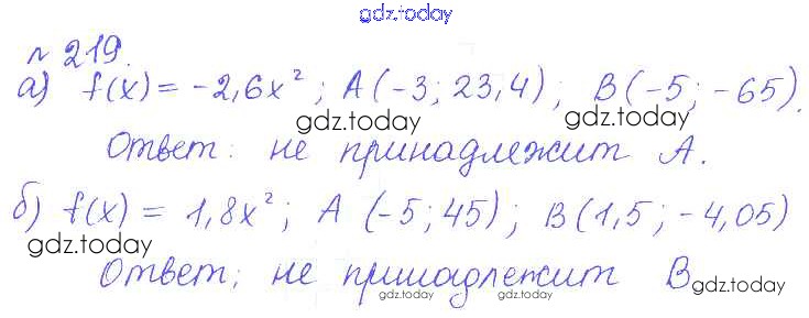 На страницах сайта gdz.today вы найдете учебный и вспомогательный материал, направленный на улучшения знаний школьной программы. ГДЗ - онлайн мир знаний Решение. Упражнения 219 Учебнику по Алгебре для 9 класса Дорофеев, Суворова Просвещение, Просвещение 2016, 2019