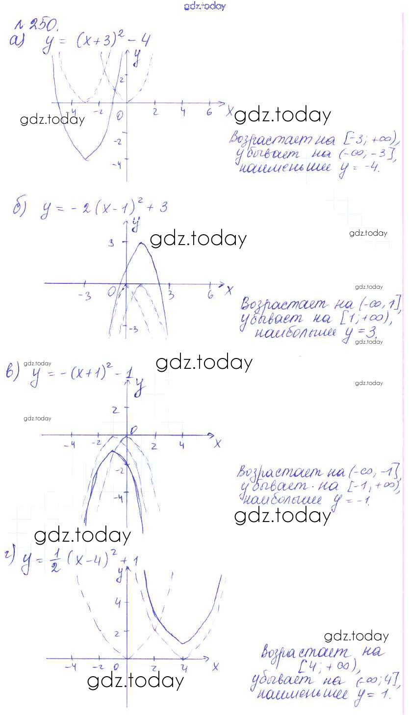 На страницах сайта gdz.today вы найдете учебный и вспомогательный материал, направленный на улучшения знаний школьной программы. ГДЗ - онлайн мир знаний Решение. Упражнения 250 Учебнику по Алгебре для 9 класса Дорофеев, Суворова Просвещение, Просвещение 2016, 2019