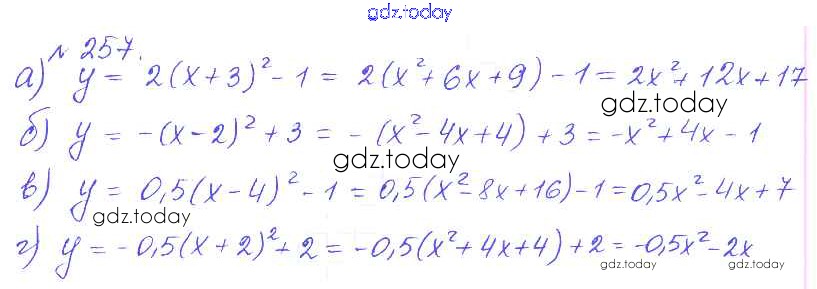 На страницах сайта gdz.today вы найдете учебный и вспомогательный материал, направленный на улучшения знаний школьной программы. ГДЗ - онлайн мир знаний Решение. Упражнения 257 Учебнику по Алгебре для 9 класса Дорофеев, Суворова Просвещение, Просвещение 2016, 2019