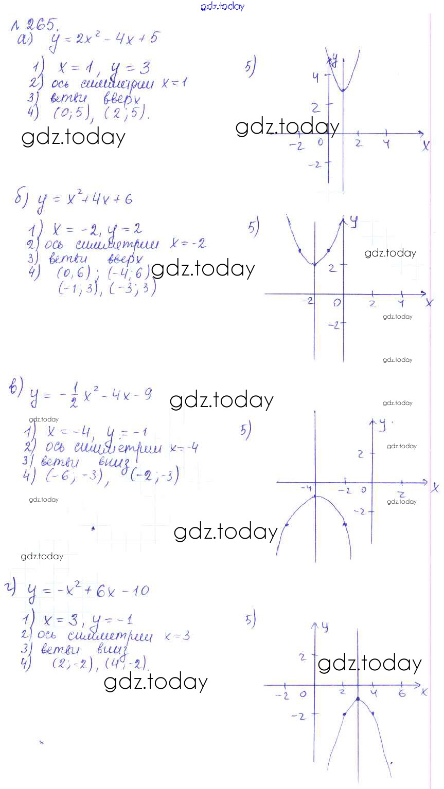 На страницах сайта gdz.today вы найдете учебный и вспомогательный материал, направленный на улучшения знаний школьной программы. ГДЗ - онлайн мир знаний Решение. Упражнения 265 Учебнику по Алгебре для 9 класса Дорофеев, Суворова Просвещение, Просвещение 2016, 2019