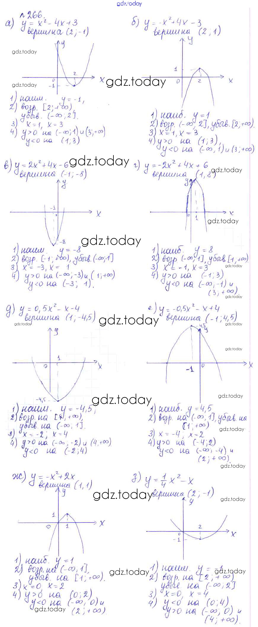 Ответы к Решение. Упражнения 266 Учебнику по Алгебре для 9 класса Дорофеев, Суворова Просвещение, Просвещение 2016, 2019