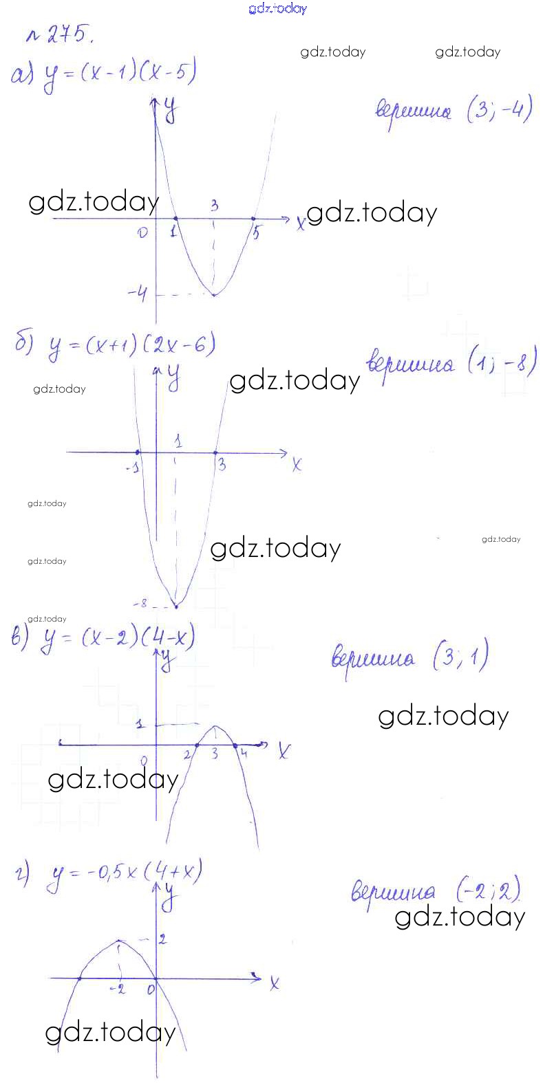 На страницах сайта gdz.today вы найдете учебный и вспомогательный материал, направленный на улучшения знаний школьной программы. ГДЗ - онлайн мир знаний Решение. Упражнения 275 Учебнику по Алгебре для 9 класса Дорофеев, Суворова Просвещение, Просвещение 2016, 2019