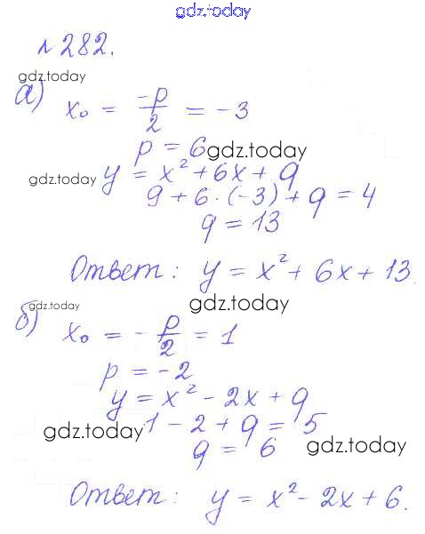 На страницах сайта gdz.today вы найдете учебный и вспомогательный материал, направленный на улучшения знаний школьной программы. ГДЗ - онлайн мир знаний Решение. Упражнения 282 Учебнику по Алгебре для 9 класса Дорофеев, Суворова Просвещение, Просвещение 2016, 2019