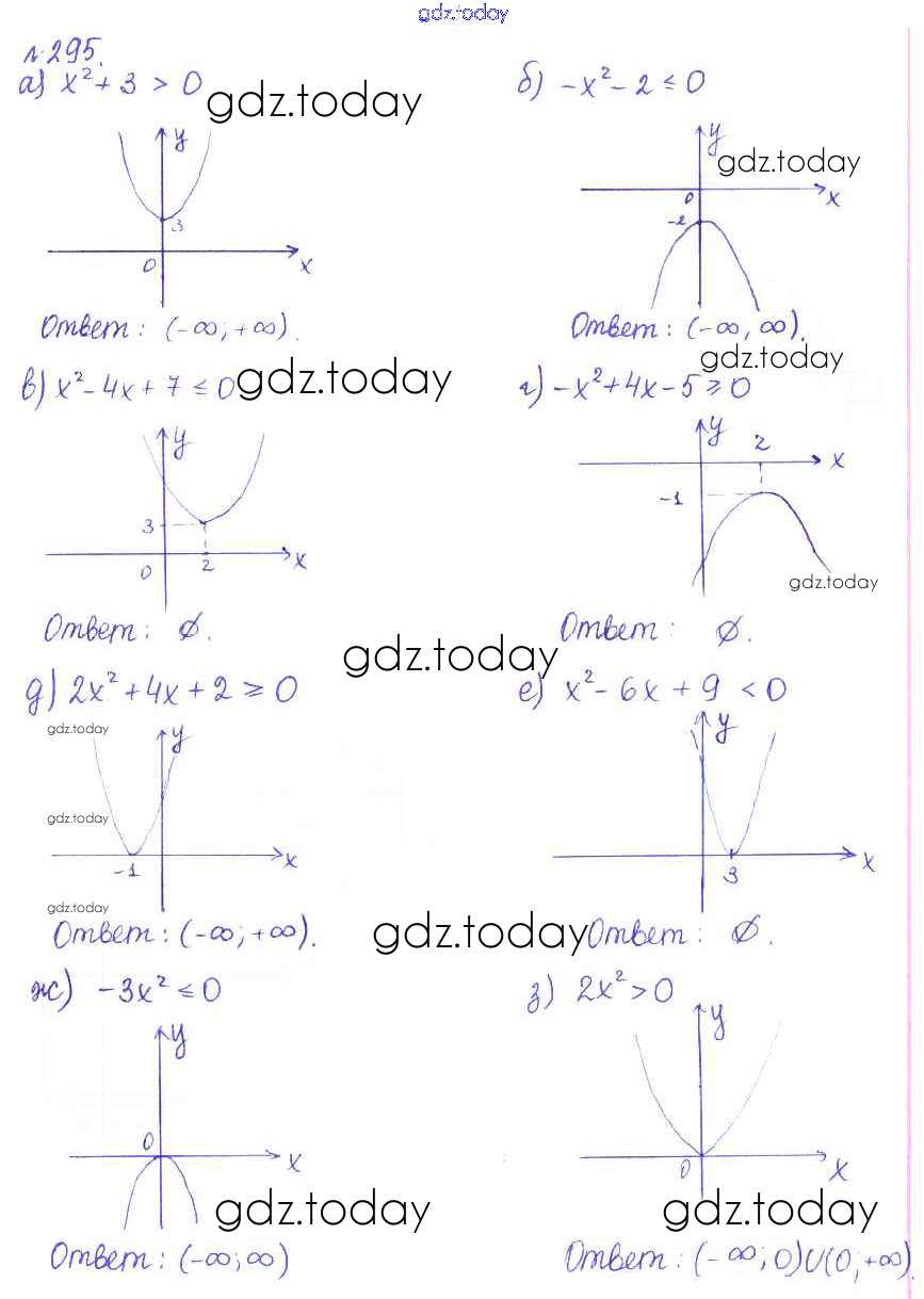 На страницах сайта gdz.today вы найдете учебный и вспомогательный материал, направленный на улучшения знаний школьной программы. ГДЗ - онлайн мир знаний Решение. Упражнения 295 Учебнику по Алгебре для 9 класса Дорофеев, Суворова Просвещение, Просвещение 2016, 2019