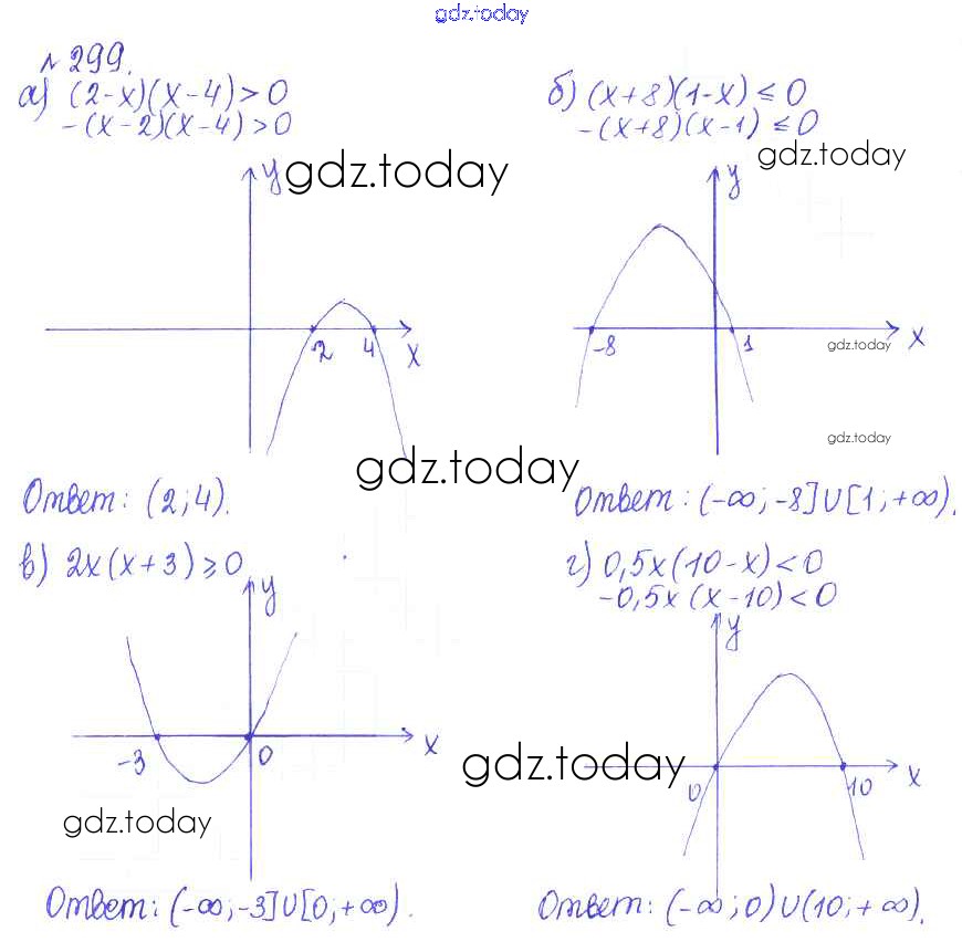 Ответы к Решение. Упражнения 299 Учебнику по Алгебре для 9 класса Дорофеев, Суворова Просвещение, Просвещение 2016, 2019
